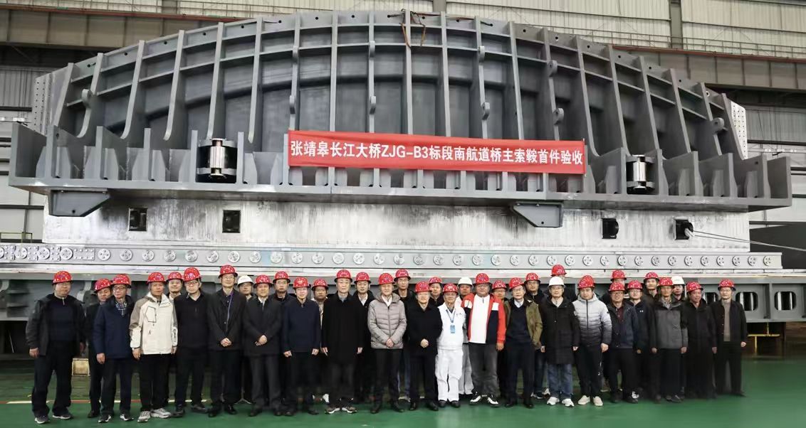 張靖皋長江大橋是目前在建的世界最大跨度懸索橋,全長7859米,其中南航道橋主跨2300米,實現(xiàn)了中國橋梁從千米跨徑到兩千米跨徑的突破。大橋建設(shè)過程中刷新六項“世界之最”、實現(xiàn)六項“世界首創(chuàng)”。建成后將大幅縮短張家港、 靖江、如皋三地的通行時間,極大地促進長三角區(qū)域一體化發(fā)展,優(yōu)化長江干線過江通道布局。中船武漢船機公司承制了張靖皋長江大橋南航道橋主索鞍2套,北航道橋主索鞍4套、散索鞍4套和索夾284套。