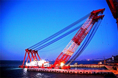大型浮式起重機(jī)也稱(chēng)為起重船或浮吊,可采用雙臂架結(jié)構(gòu),起重量可達(dá)3600噸,起升高度可達(dá)110米,廣泛應(yīng)用于沿海及近海的大型橋梁和設(shè)備的吊運(yùn)、安裝及打撈作業(yè)等。該類(lèi)起重機(jī)起重量大、起升高度高,操作方便、靈活、準(zhǔn)確,維修方便,能滿足施工海域風(fēng)大、浪高、水深、流急等惡劣海況的要求,技術(shù)達(dá)到國(guó)內(nèi)領(lǐng)先水平。