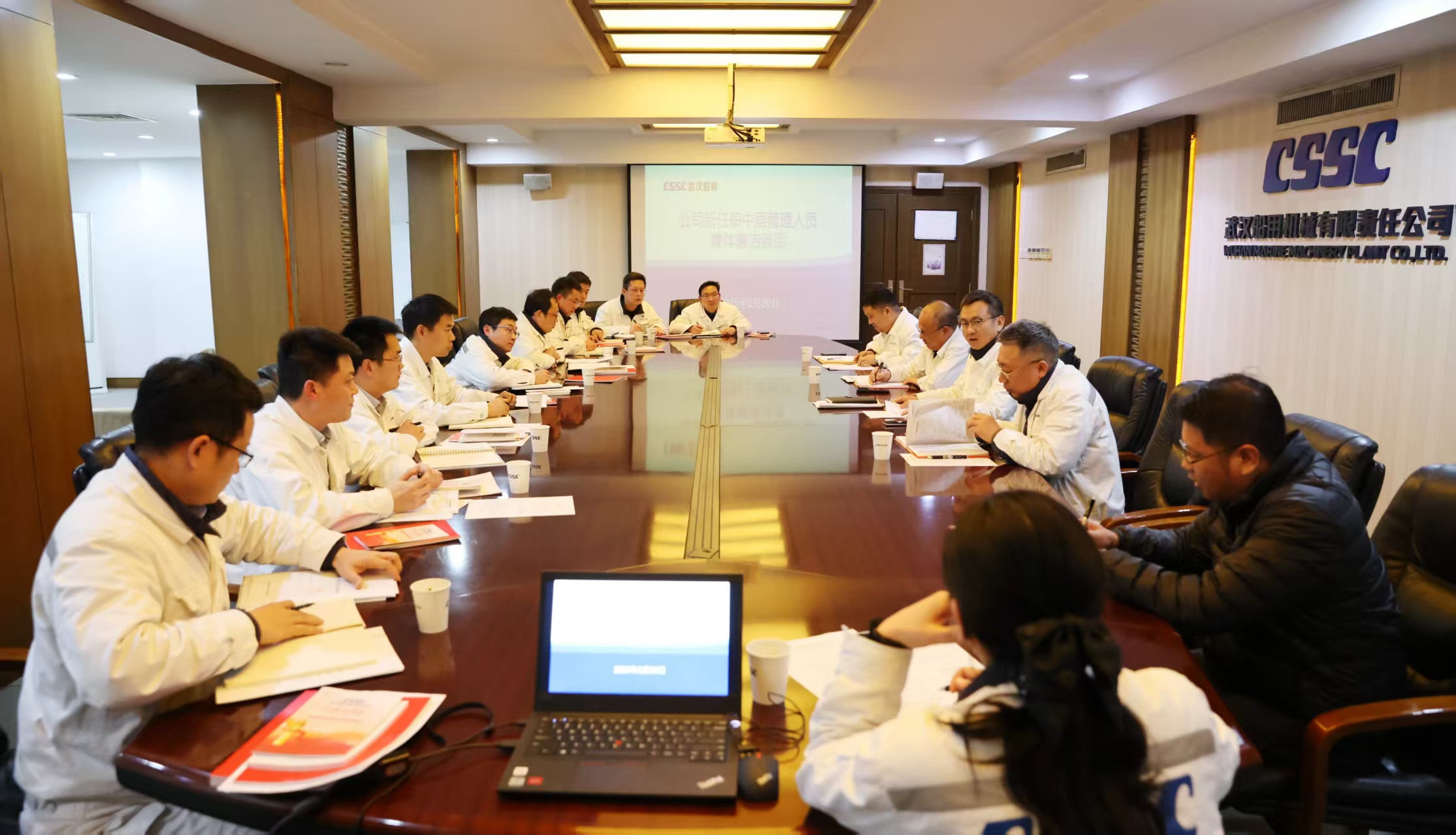 2月20日,中國船舶武漢船機(jī)開展新任職中層管理人員集體廉潔談話。公司黨委副書記、總經(jīng)理程立兵,公司黨委委員、總會計師陳世龍參加。